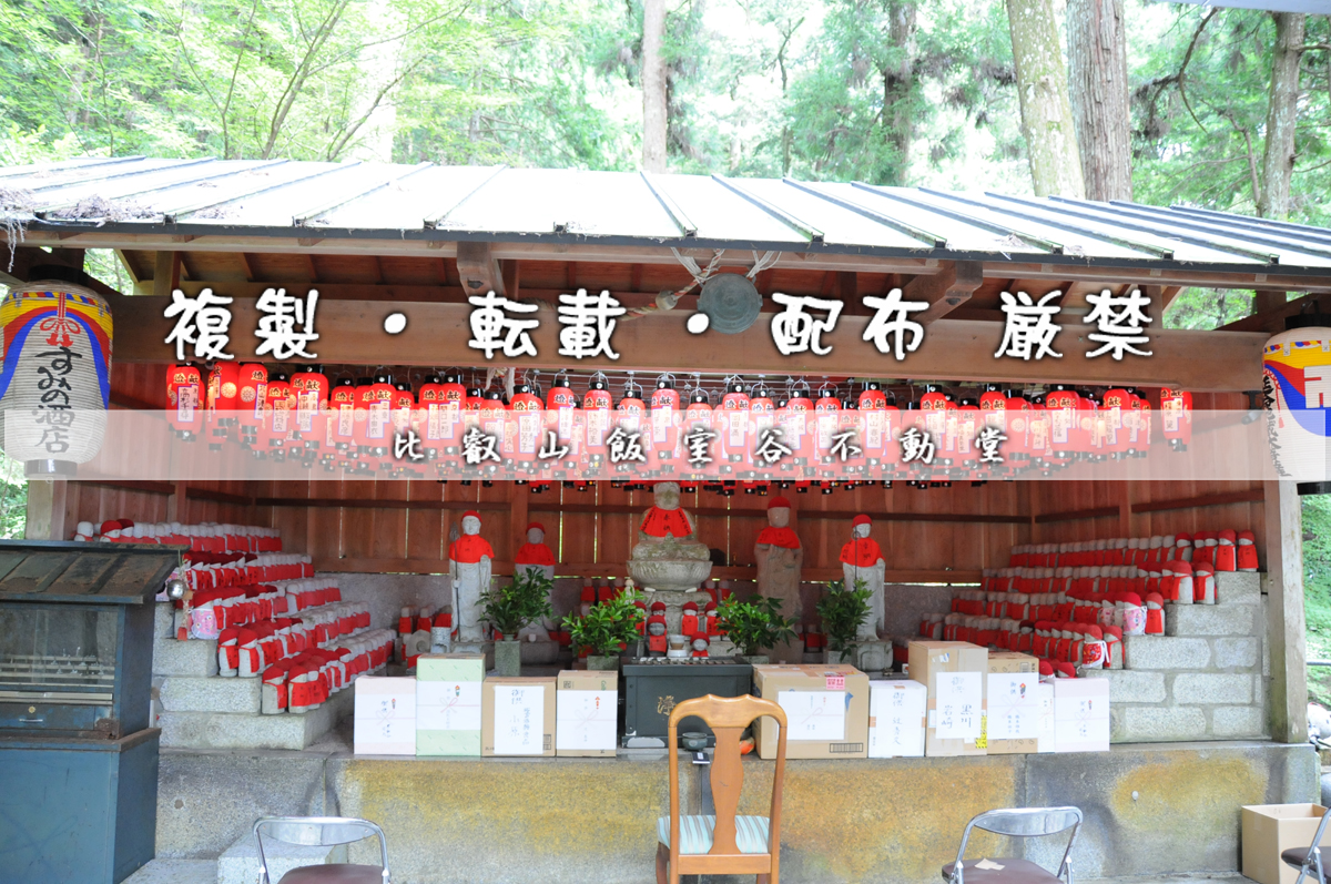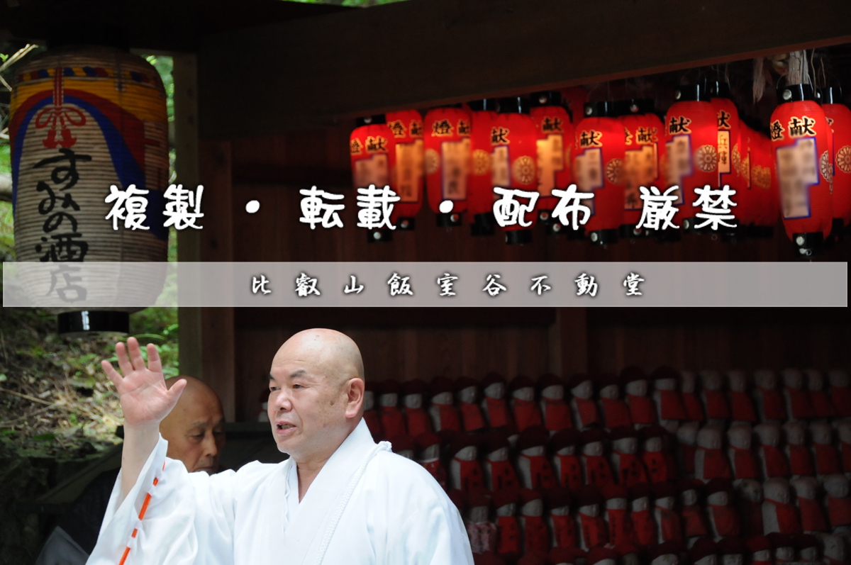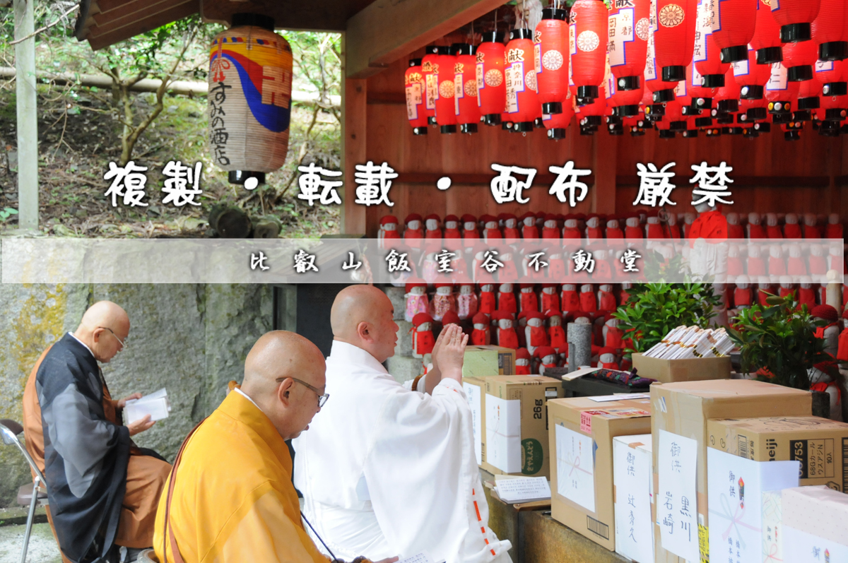 「比叡山飯室谷・不動堂」があるこの地は、古来から「比叡山三大魔所」の一つとされています。 魔所とされるのは、恐ろし処という意味ではなく、清浄地であることより、ことの他、身を慎み、殺生などをしてはいけないという地です。 この霊験豊かなこの地で、皆様がより幸せであられますよう祈念しております。